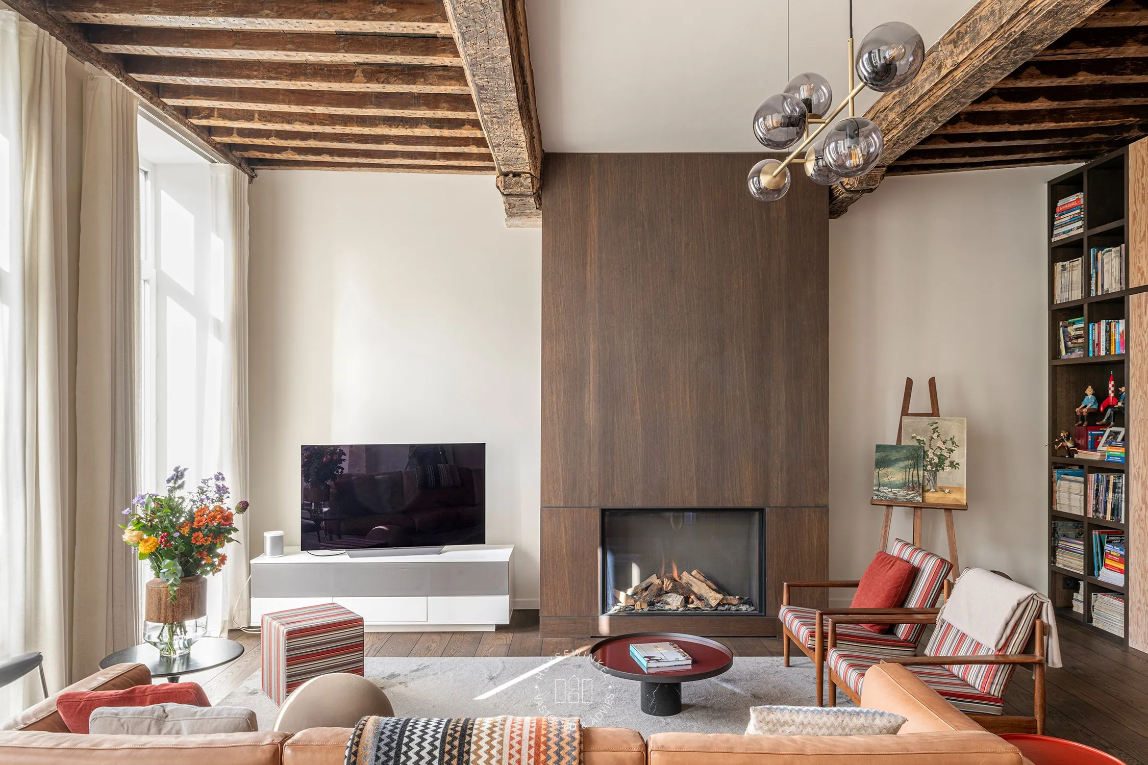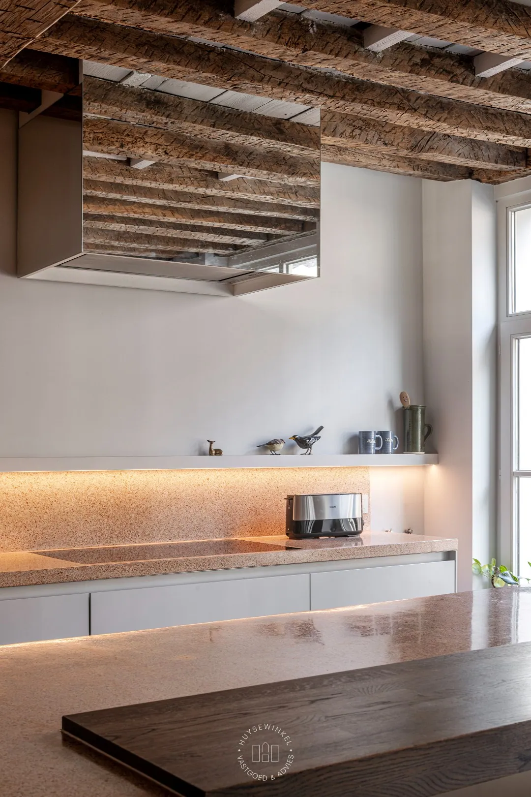 De woning beschikt over twee leefruimtes, waaronder een heerlijke zomerliving op tuinniveau die via grote raampartijen in directe verbinding staat met de groene stadstuin en het ruime terras. De keuken werd knap afgewerkt met een hoge gezelligheidsgraad. Met drie slaapkamers, twee stijlvol afgewerkte badkamers, een personenlift en een doordachte circulatie biedt dit huis een uitzonderlijk comfortniveau, zonder in te boeten op authenticiteit of karakter.