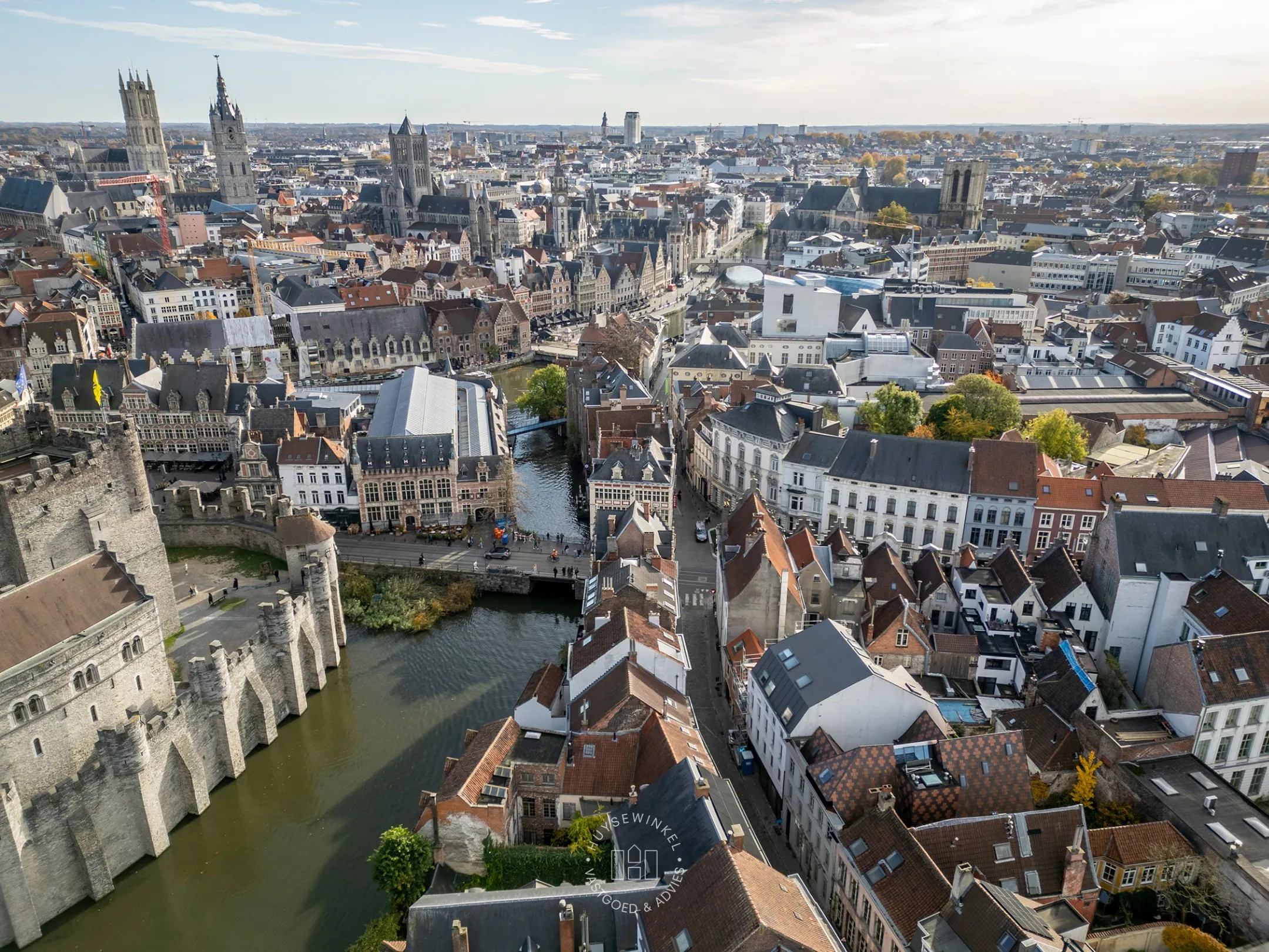 Het historisch centrum van Gent is een sfeervolle plek waar middeleeuwse architectuur en levendige stedelijkheid harmonieus samenkomen. Rond de Graslei en Korenlei weerspiegelt het water de oude gildenhuizen, terwijl de indrukwekkende torens van de Sint-Baafskathedraal, het Belfort en de Sint-Niklaaskerk het stadsbeeld domineren. Smalle straatjes, gezellige pleinen en het imposante Gravensteen laten je de rijke geschiedenis van de stad voelen. Tegelijk bruist het centrum van cultuur, winkels en cafés, waardoor Gent een unieke mix biedt van verleden en heden.