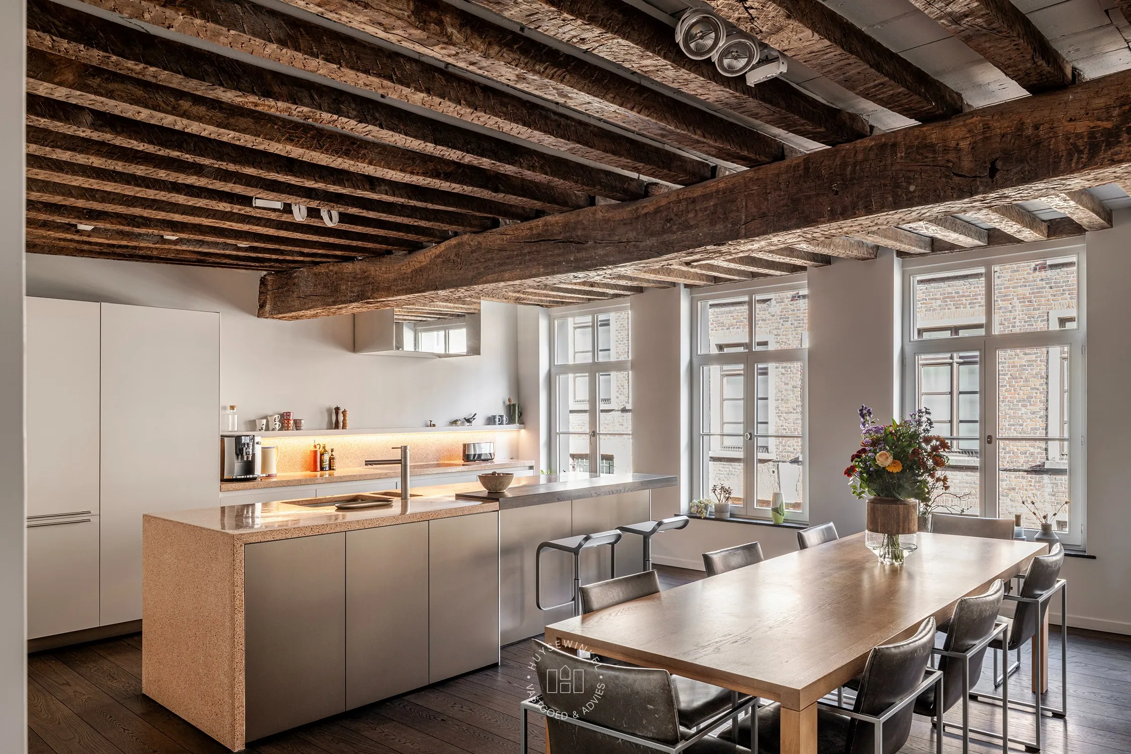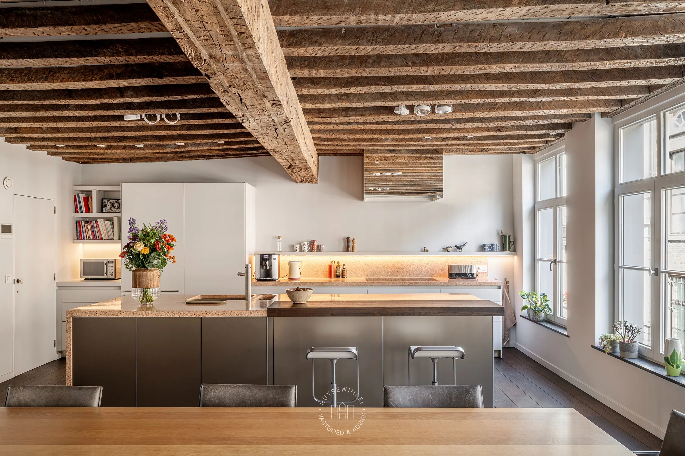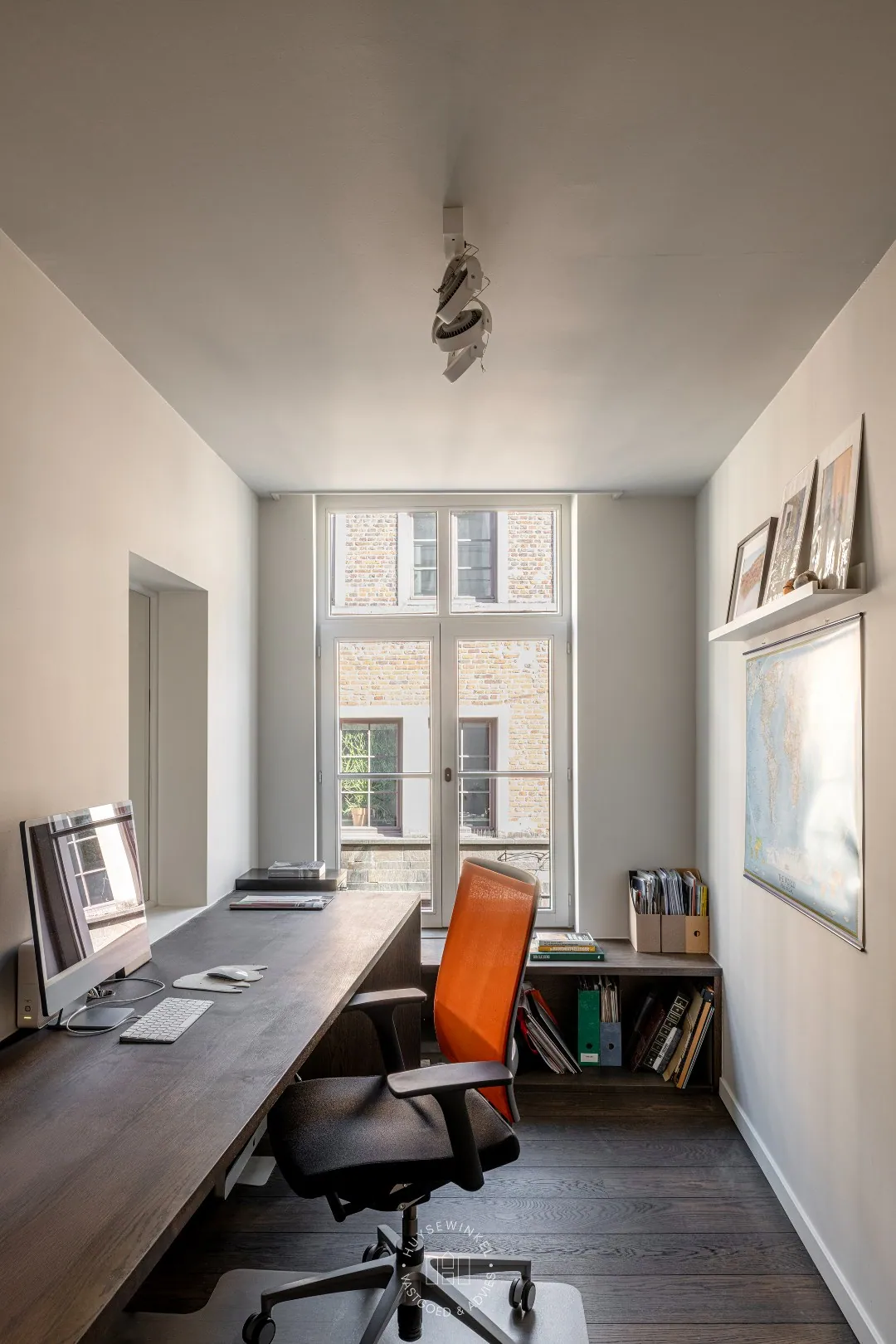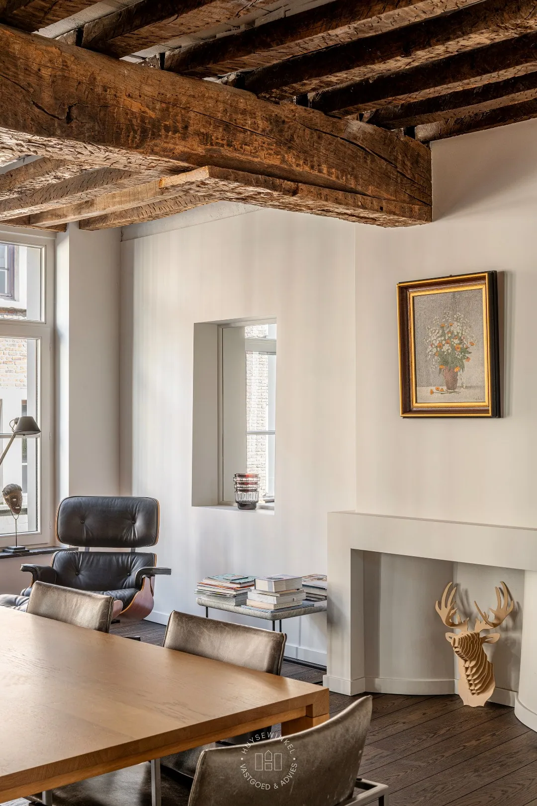 € 2 250 000In het hart van het historische centrum van Gent, op wandelafstand van het Gravensteen, bevindt zich deze uitzonderlijke gezinswoning die twee historische panden samenbrengt tot één architecturaal meesterwerk. De renovatie werd uitgevoerd door het gerenommeerde architectenbureau Atelier Vens Vanbelle, dat bekendstaat om zijn vernieuwende visie, oog voor detail en respect voor historische context. Het resultaat vormt een verfijnde dialoog tussen erfgoed, eigentijdse architectuur en subtiele knipogen naar het verleden.